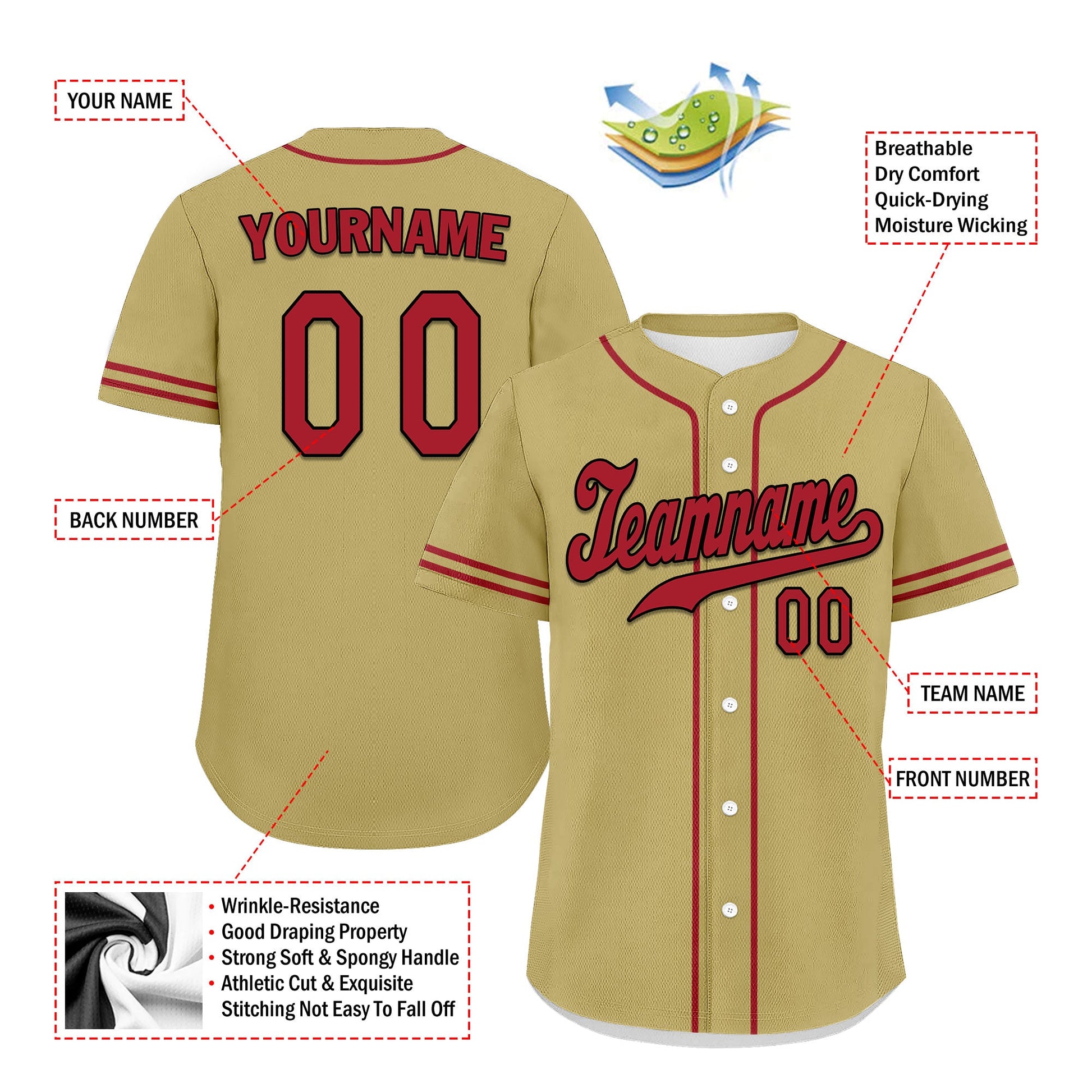 Each CCJ tailored baseball jersey is meticulously personalized with the following features: