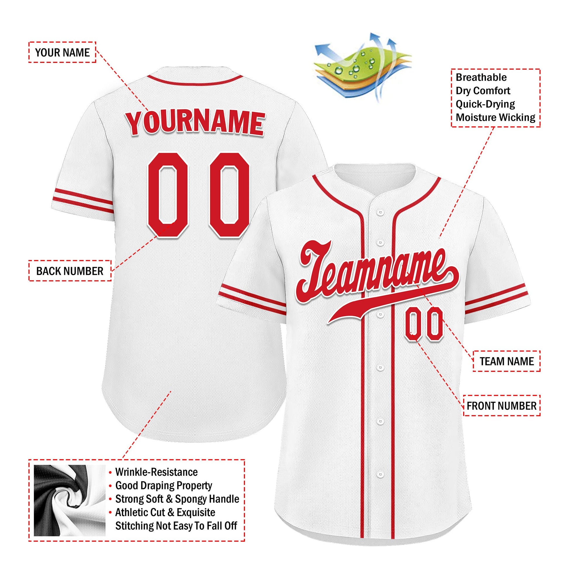 Each CCJ tailored baseball jersey is meticulously personalized with the following features: