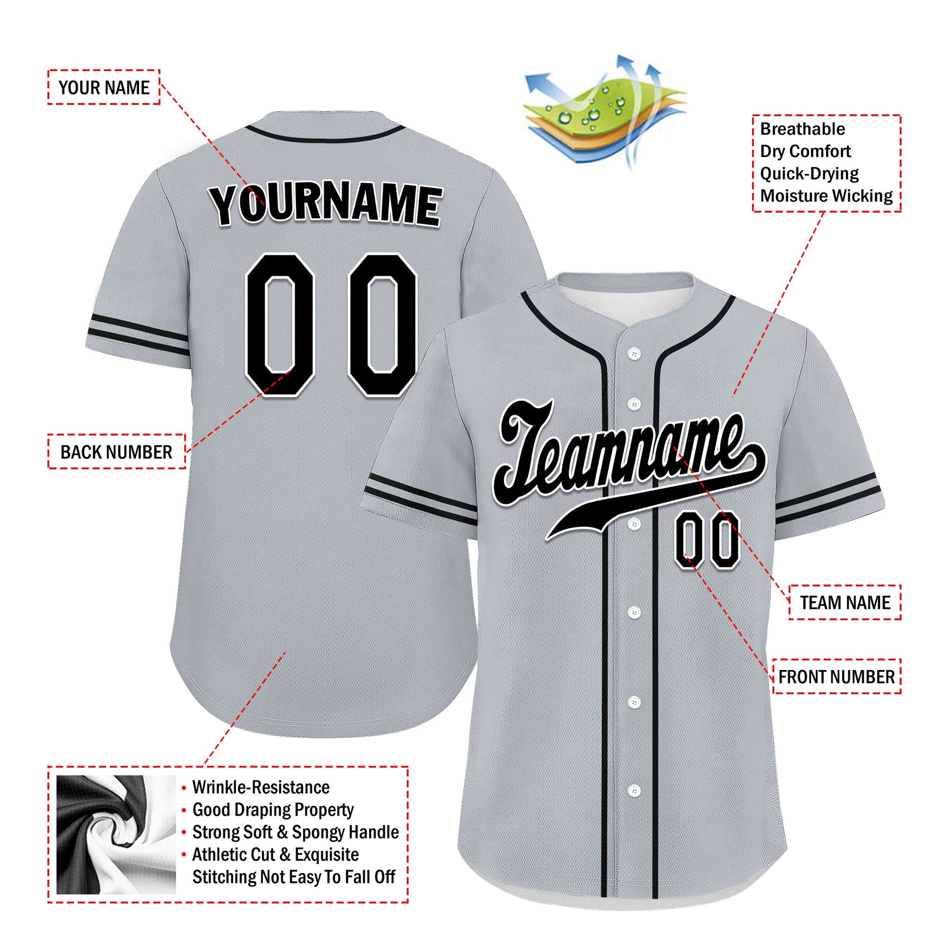 Each CCJ tailored baseball jersey is meticulously personalized with the following features: